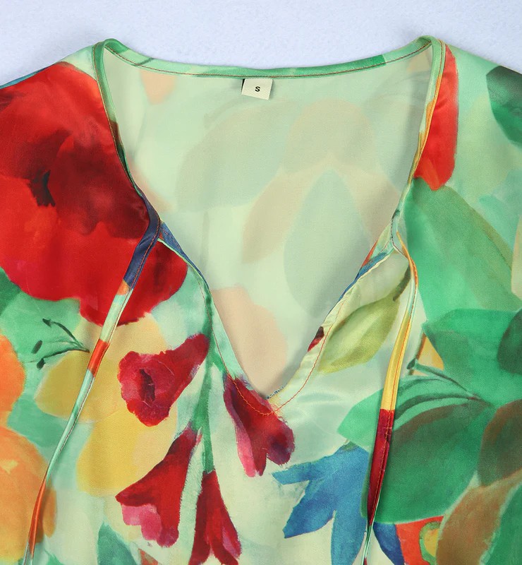 Neckline: V-neck; Sleeve Length: Long Sleeve; Dress Length: Mini; Pattern Type: Print; Silhouette: Shift; 65% Rayon, 35% Elastane; Machine Washable.