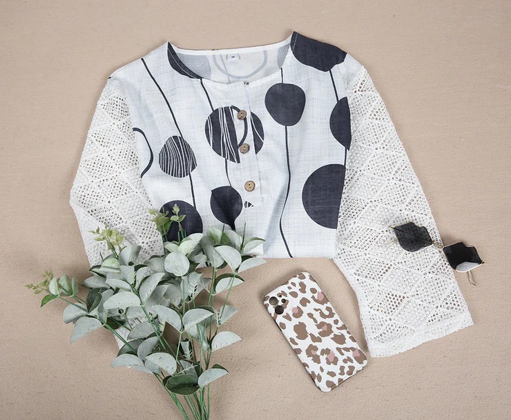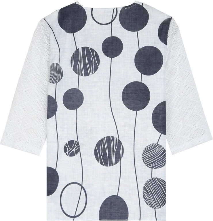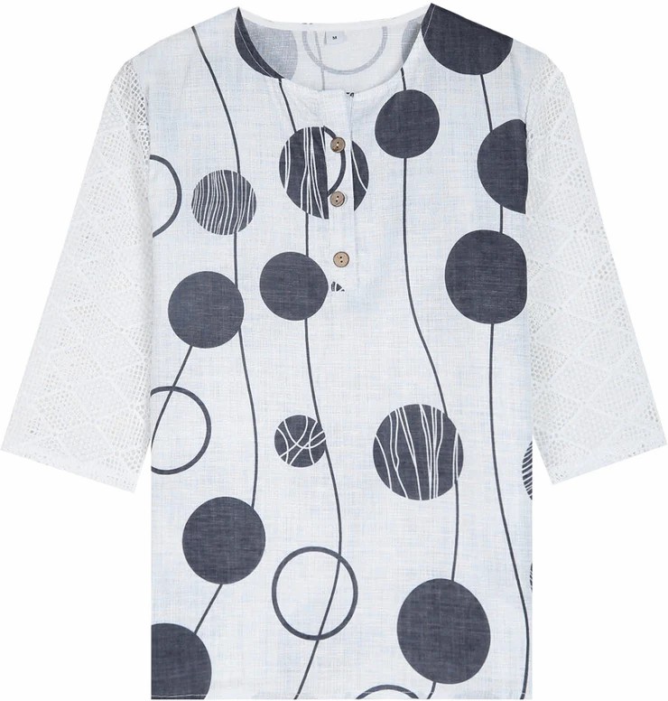 V-neck; Sleeve Length: 3/4 Sleeve; Pattern Type: Print; 40% Elastane, 60% Rayon; Machine Washable.