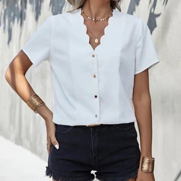 Neckline: V-neck; Sleeve Length: Short Sleeve; Pattern Type: Plain; Material: 35% Elastane, 65% Rayon; Machine Washable.