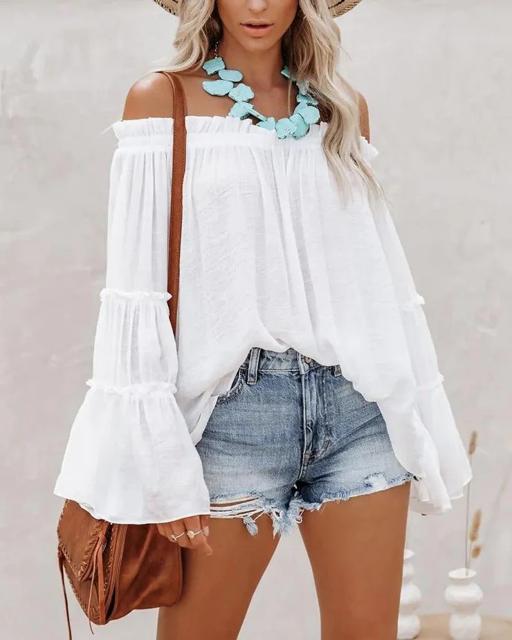 Off the Shoulder; Sleeve Length: Long Sleeve; Pattern Type: Plain; 40% Elastane, 60% Rayon; Machine Washable.
