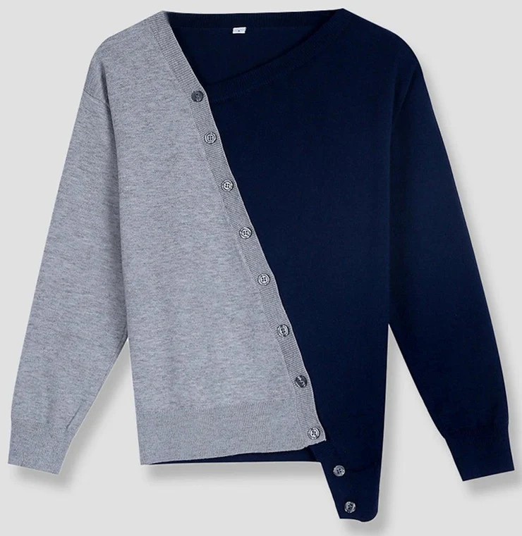 Choose this easy-to-mix and match sweater with your favorite pair of jeans, denim shorts, or slacks for a casual workday or a day out for a happy hour, a party, get-together, and so much more. The unique asymmetrical square collar and fit give it an artistic vibe, along with the loose-fitting long sleeves that will keep you cozy and warm. Sleeve Length: Long Sleeve; V-neck; Pattern Type: Color Block; Cotton/Acrylic; Relaxed Fit; Machine Washable.