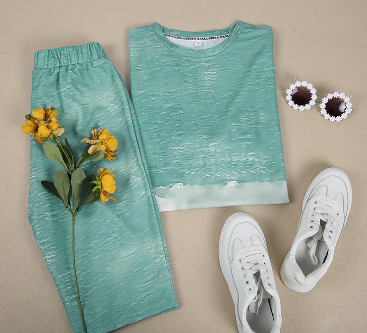 Round Neck; Sleeve Length: Short Sleeve; Pattern Type: Print; 65% Cotton, 35% Elastane; Machine Washable.