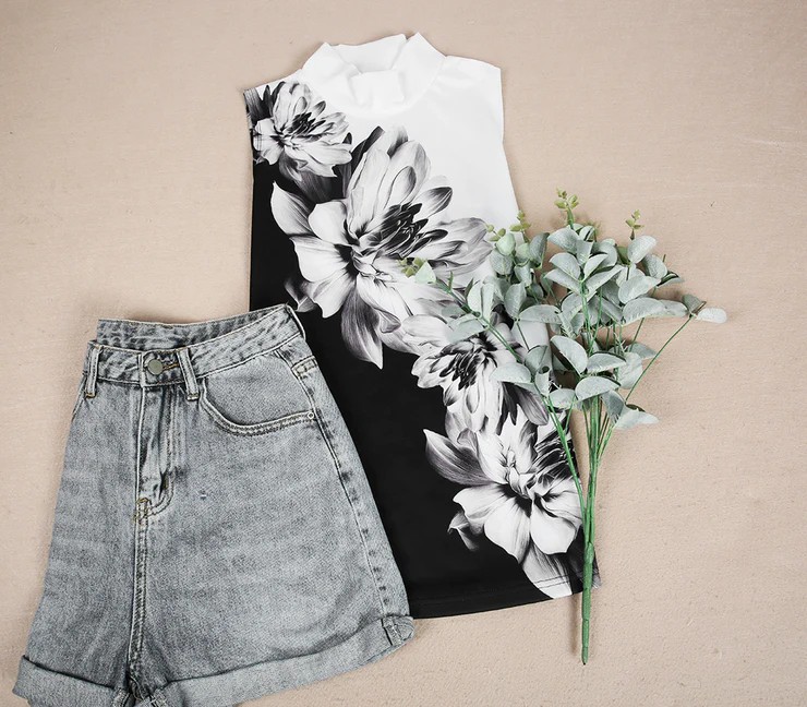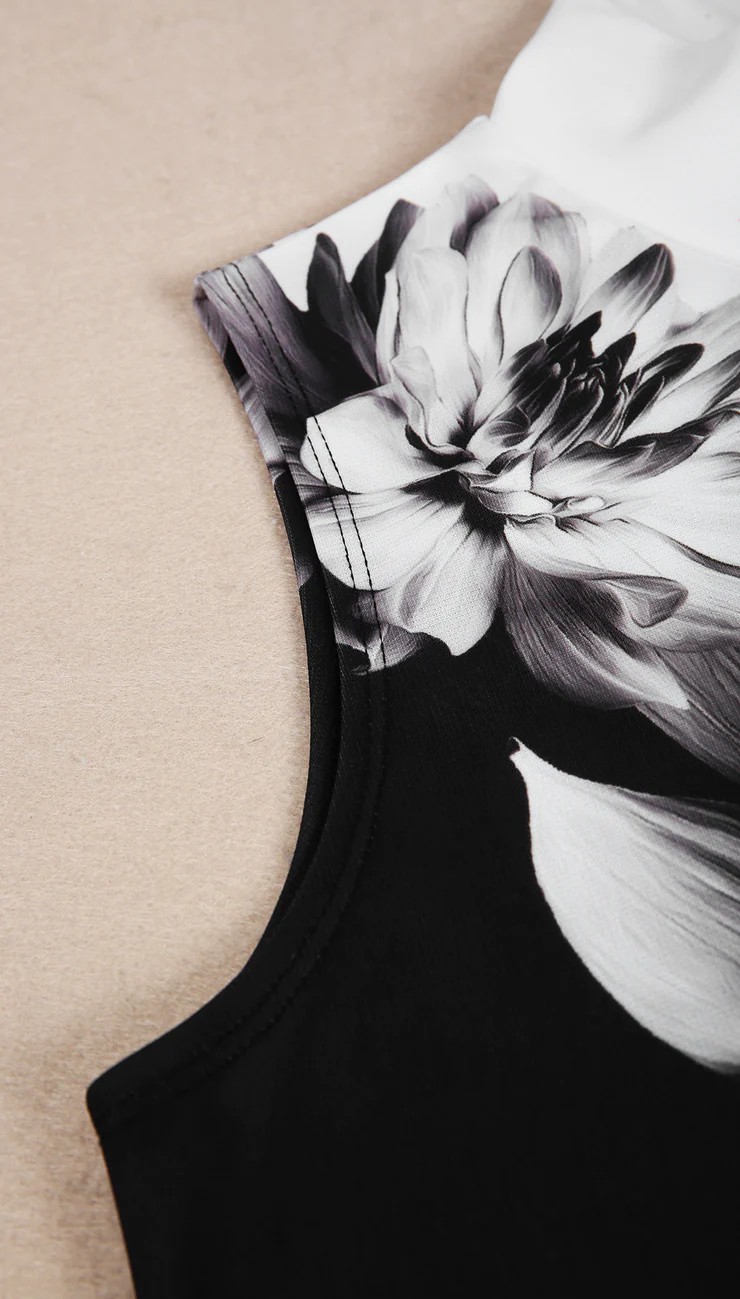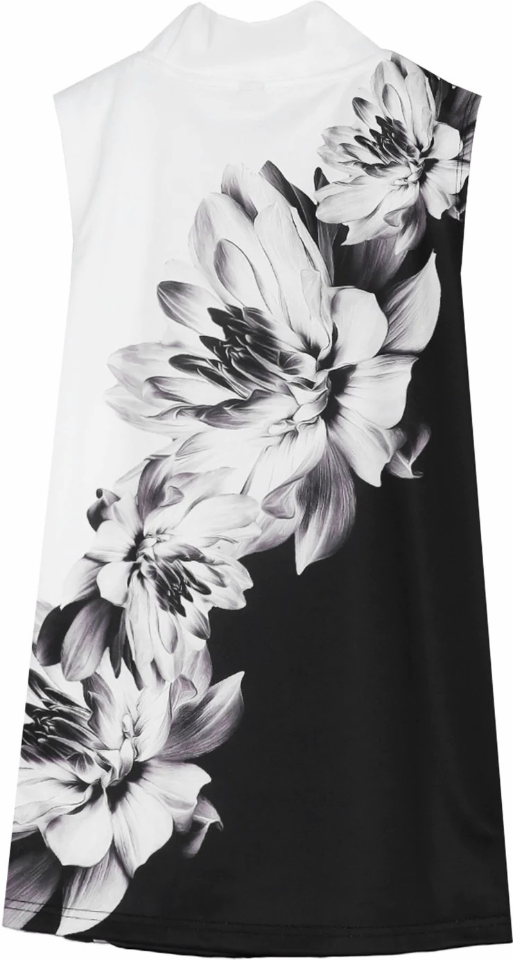 Sleeve Length: Sleeveless; Neckline: Mock Neck; Pattern Type: Print; Material: 35% Elastane, 65% Rayon; Machine Washable.